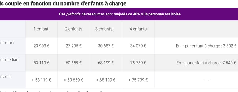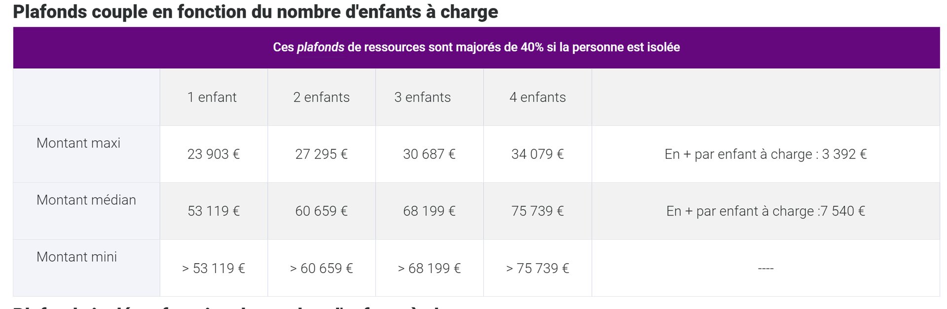 Ci-dessous un tableau récapitulatif établi par la CAF permettant de connaitre votre tranche :